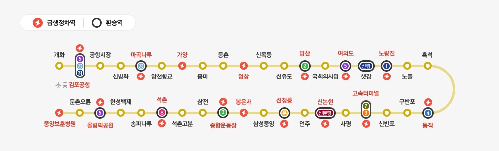 서울 지하철 9호선 노선도입니다.